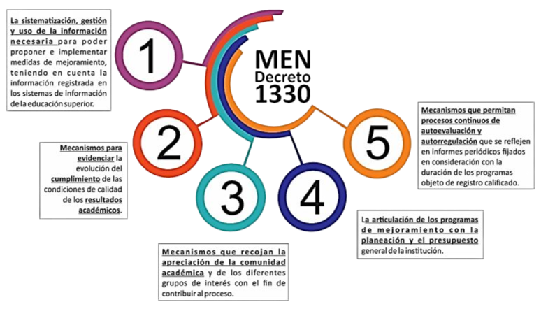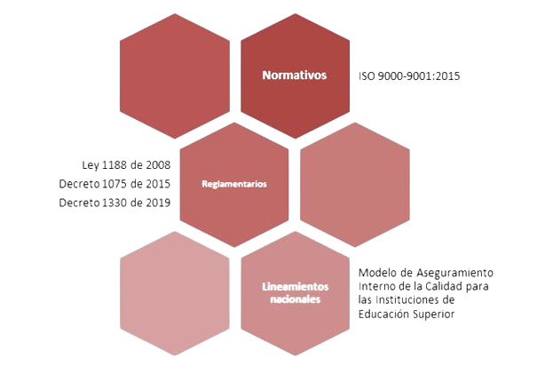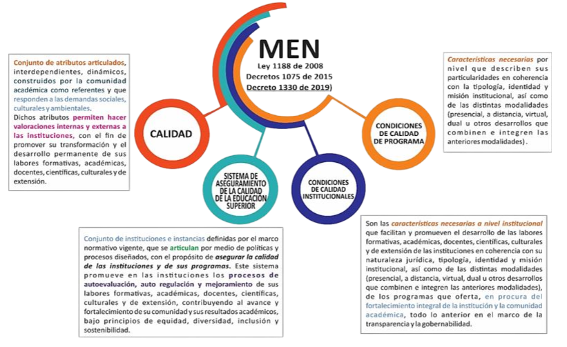 En el Decreto 1330 de 2019 se define el concepto de calidad, al igual que el del Sistema de Aseguramiento de la Calidad de la Educación Superior y el de las Condiciones de Calidad tanto de Programas como Institucionales, estas definiciones aportan elementos específicos que se tienen como referentes en la construcción de los proyectos educativos de la oferta académica de las Instituciones de Educación Superior.